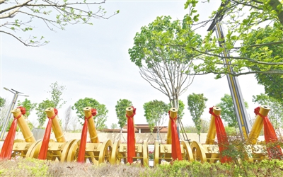 当日上午,黄帝故里园区旗幡猎猎、庄严肃穆。南门广场上,龙腾虎跃,鼓声震天。寓意着中华儿女来自五湖四海的540名炎黄子孙,分别组成各90人的文化方阵、岐黄方阵、企业方阵、同拜方阵、台胞方阵、侨胞方阵六大拜祖队伍,整肃衣冠,佩戴黄帝丝巾,进寻根门、经系祖坛、上轩辕桥、过故里祠,观甲骨碑林方柱高举,感杜岭方鼎王者风范,听青铜编钟古音缭绕,最后缓步来到拜祖广场,端详两侧连廊浮雕,感触中华文明五千多年的源远流长。