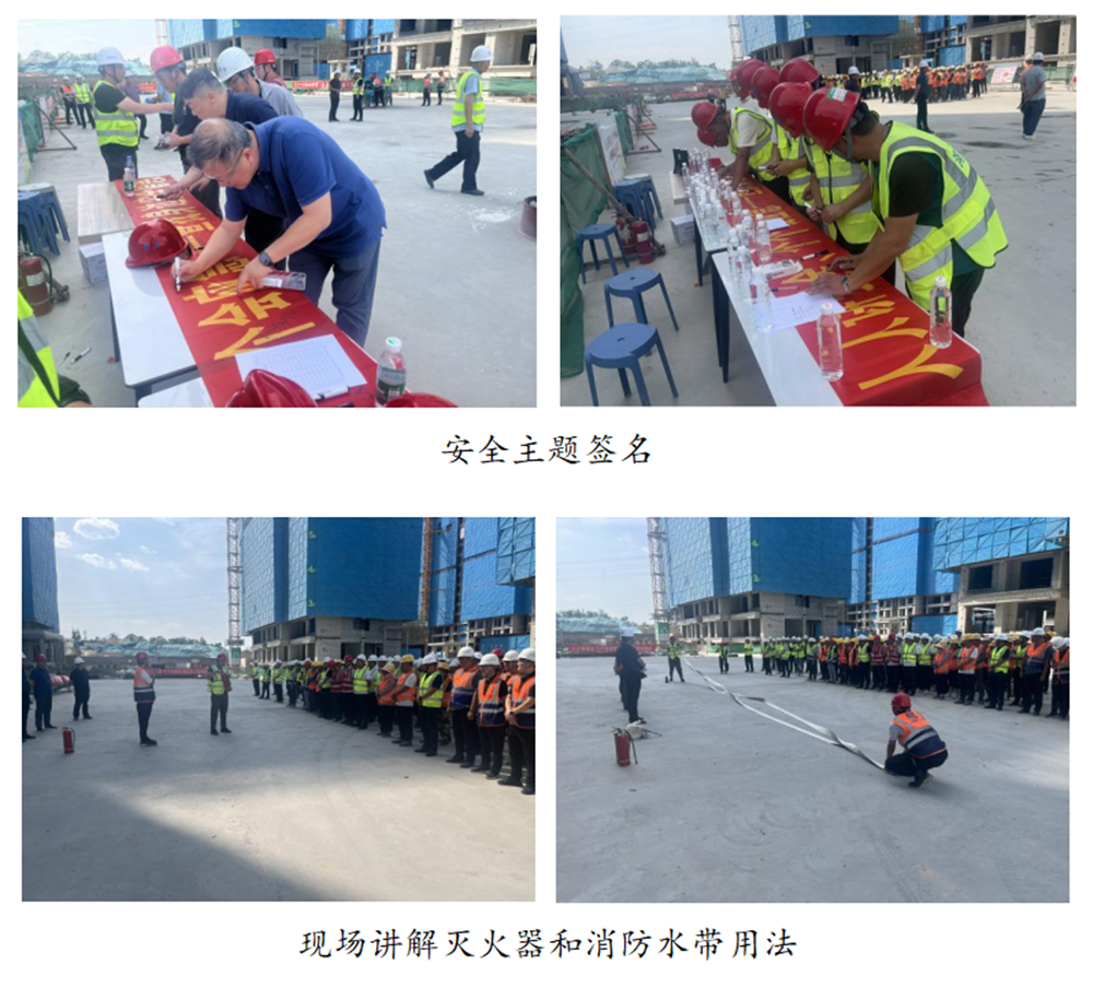 活动期间,大家积极参与安全主题签名和主题宣誓,讲解员现场讲解消防水带和灭火器的用法,解答安全生产相关知识,并开展了消防实战演练。乐玩手机登录中心-乐玩(中国)分管安全生产的总经理助理黄志澎作重要讲话,强调了安全生产的重要性,要求各单位扎实做好今年防汛工作,并为一线工人发放防暑降温药品和安全知识手册200套。