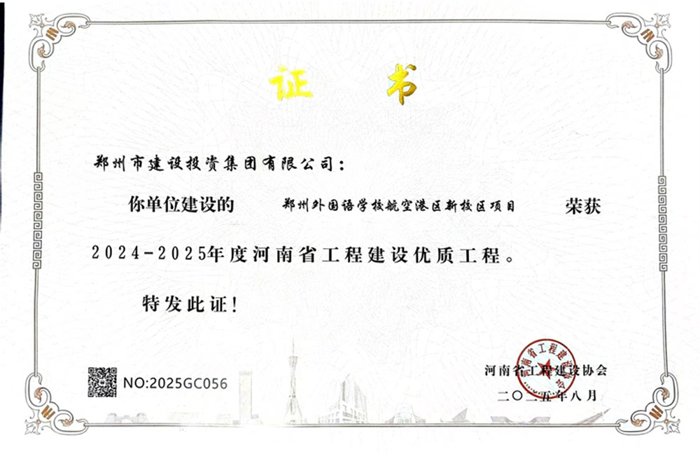 近日,由乐玩手机登录中心-乐玩(中国)代建的郑州外国语学校航空港区新校区项目荣获2024-2025年度河南省工程建设优质工程荣誉。
