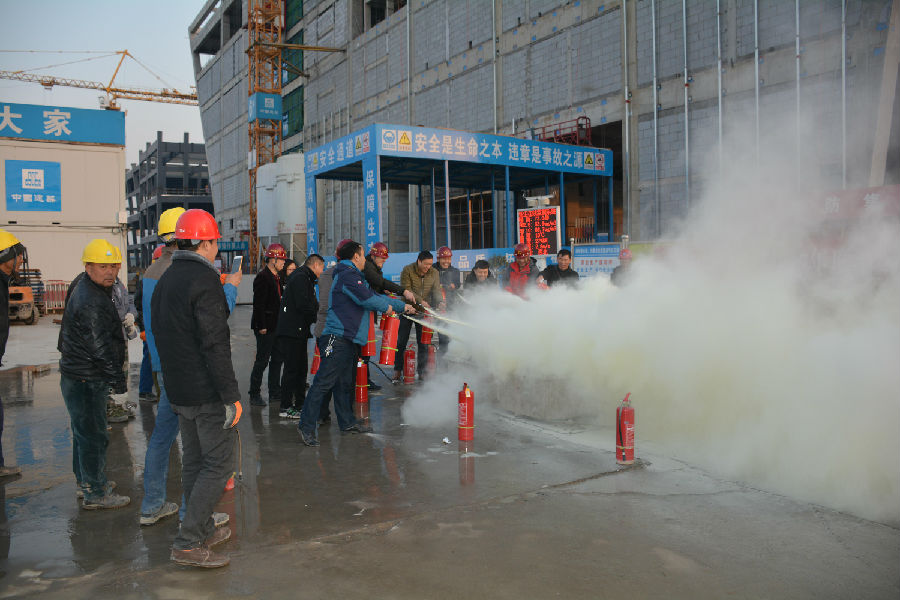活动共分为三个部分。第一部分为安全生产培训,通过观看安全生产教育视频资料、工程部经理结合项目实际宣贯施工现场消防安全法律法规及总工对安全生产工作再部署、再强调、再落实等方式,开展了一期卓有成效的安全生产培训活动;第二部分为办公场所应急疏散演练,通过模拟项目部办公区域发生火情,员工有序紧急疏散的方式,提高员工消防安全自救能力;第三部分为灭火实践演练,在工地现场模拟火情,员工实际操作灭火器进行灭火,极大地增强了员工灭火动手能力。